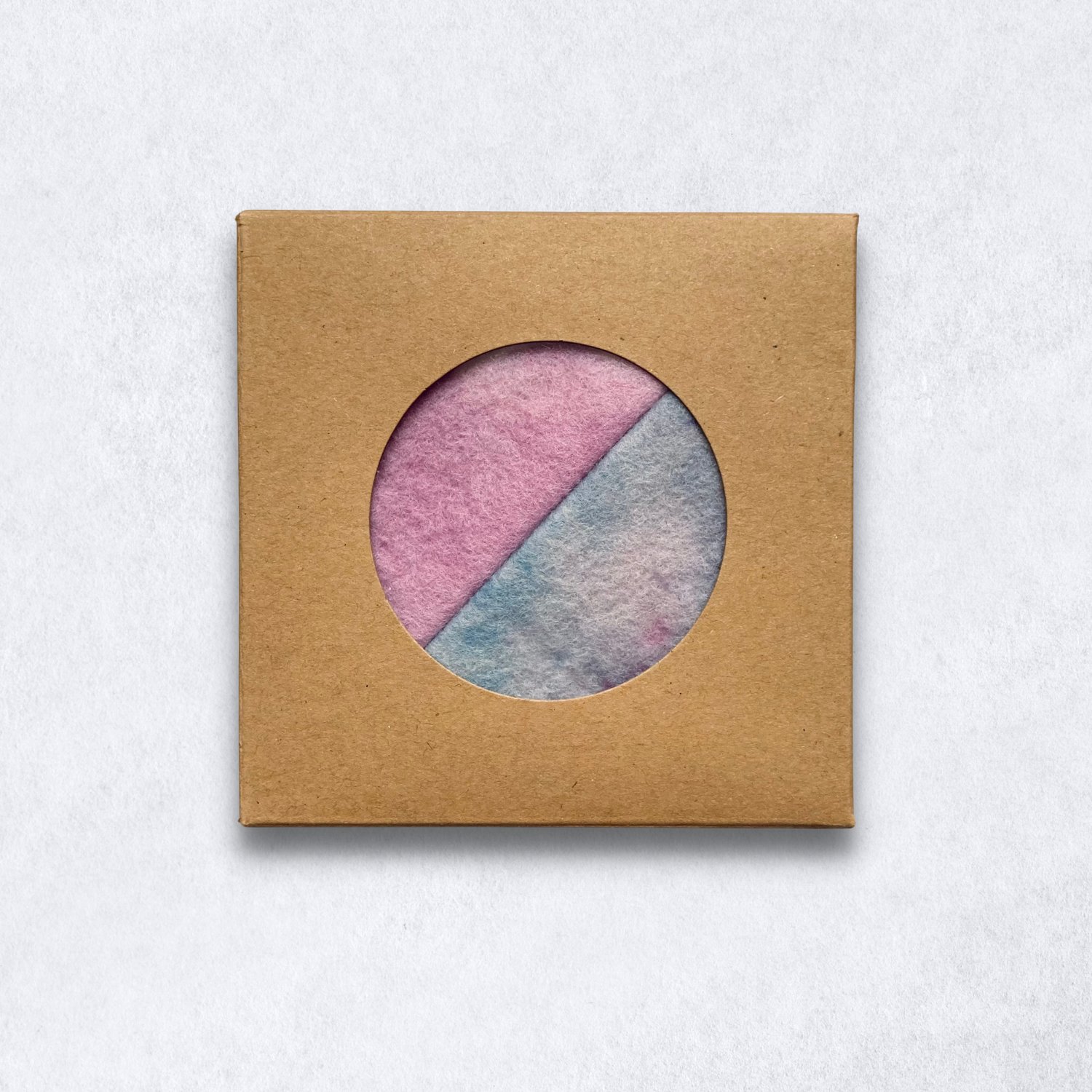 Add a pop of color to your home with these hand crafted wool felt coasters. Naturally dyed and cut, pieced, and sewn in our New Jersey studio, these coasters are 100% wool, the perfect all-natural material to protect surfaces and wick moisture.